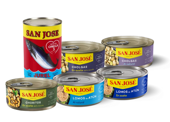 San José ofrece una completa línea de pescados y mariscos en conserva reconocida por su calidad, sabor y rendimiento. Con más de 50 años de trayectoria, la marca se ha consolidado como líder en el mercado chileno, garantizando productos con larga vida útil, alta rotación y excelente presentación.