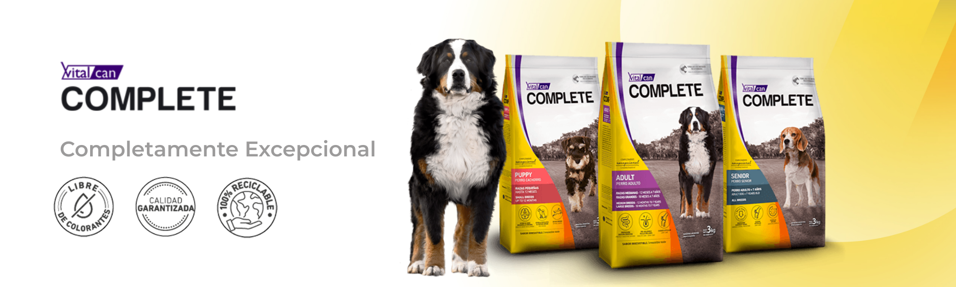| Complete Senior All Breeds | Senior todas las razas | 25% proteína + prebióticos | 20 kg | Previene pérdida de masa muscular |